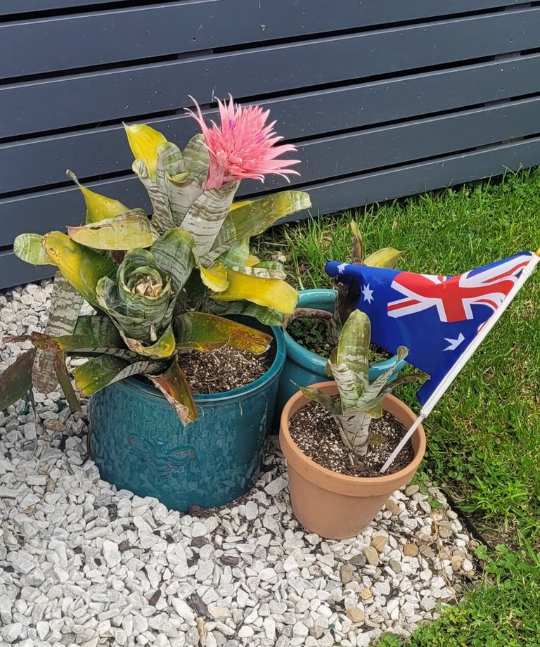 It is Australia Day - a break from theme for a flag and a bromeliad Roman candle