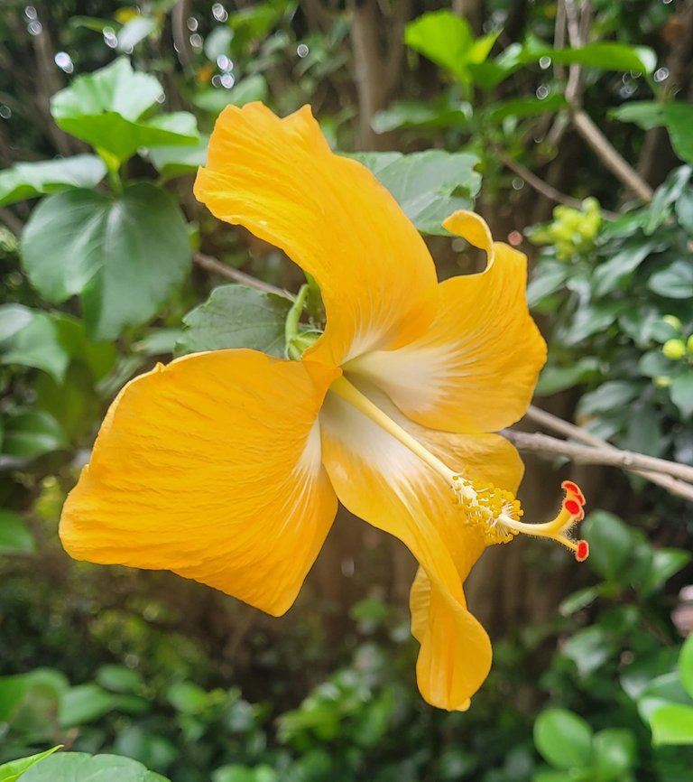Had to capture this hibiscus. Front on photo was hard work - deleted - the side on captures the vibrancy of the stamens - contrast was great. The mix of colours make the day