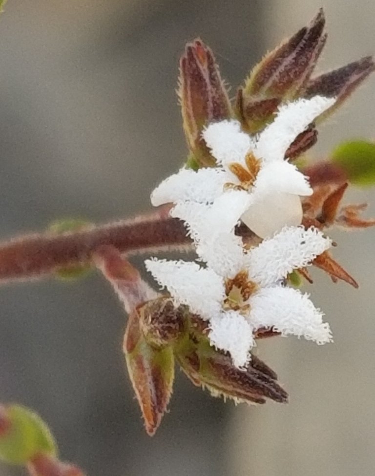 Pleased with this photo - took a few shots. The flower is tiny - a little wider across than a match head - can see the fluffy form. Small-leafed white beard