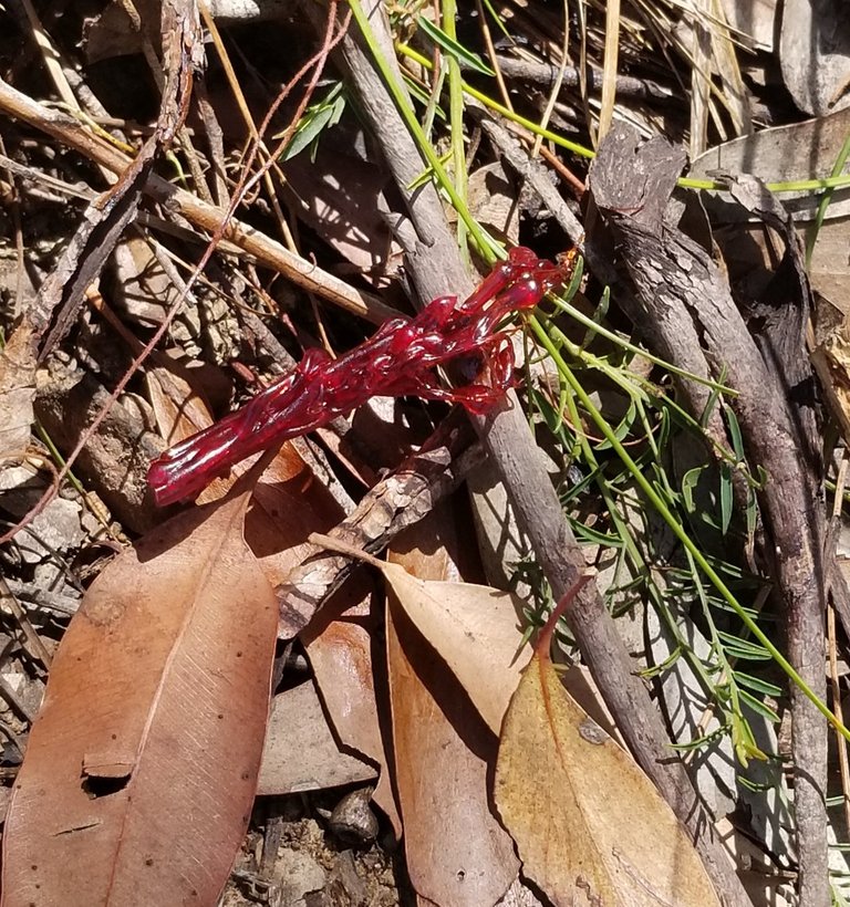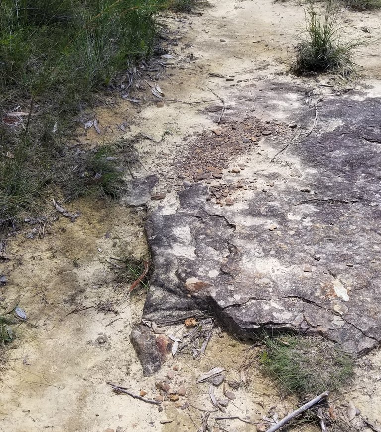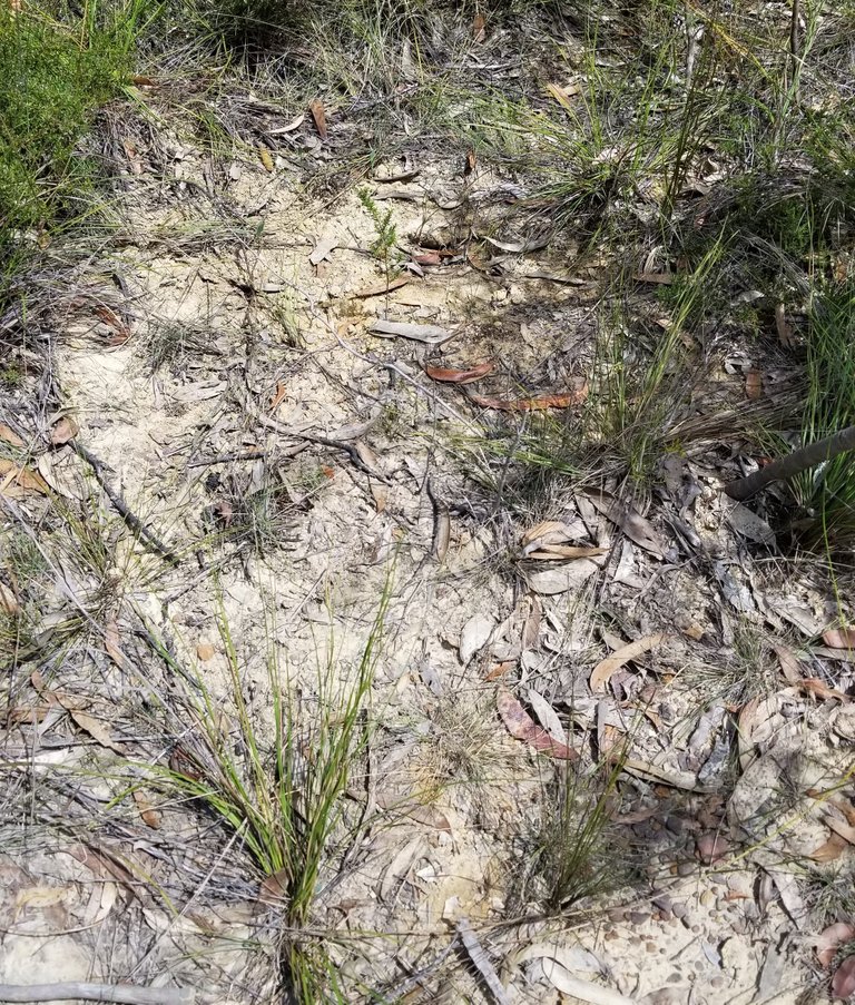 The patch has been scratched through. Maybe wallabies or bandicoot or humans. The plant left was protected by the grassy stuff