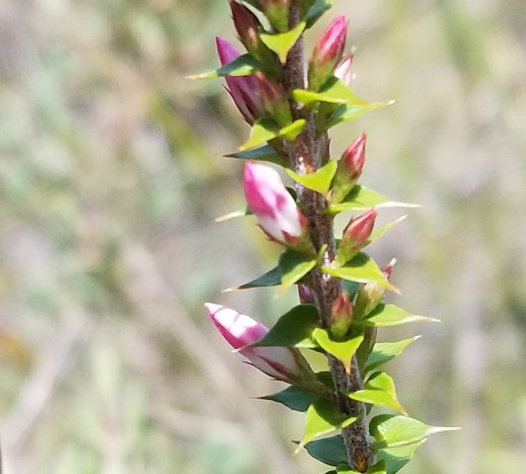 Peach-faced tea tree flower - always a haven for bugs - one ant visiting