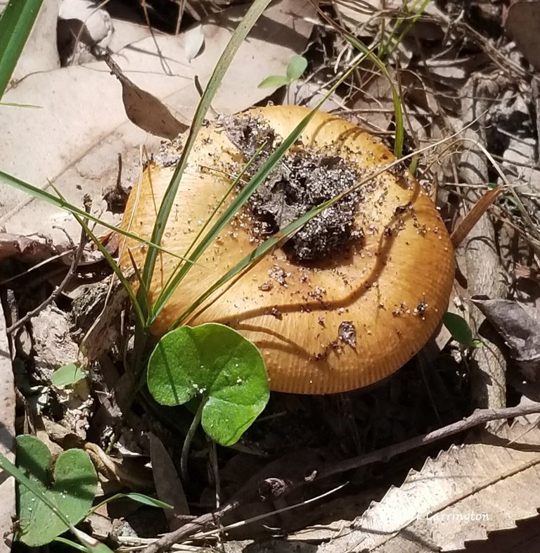 Golden top mushroom - also a sign of autumn. And in the corner is another acianthus orchid leaf