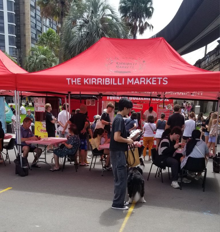 Took a train to head away from the rain. Got off to walk the bridge - first stop the weekly Kirribili Markets. Lively and dry under the arch bridge