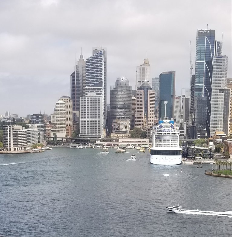 Circular Quay view with a cruise ship in attendance - and the grey went away for some blue sky
