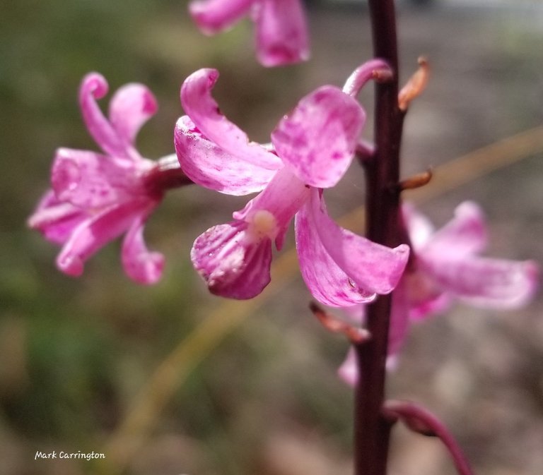 Did spy a flash of pink - rose hyacinth orchid on the road verge. Easy to ID dipodium roseum from the outward curving petals