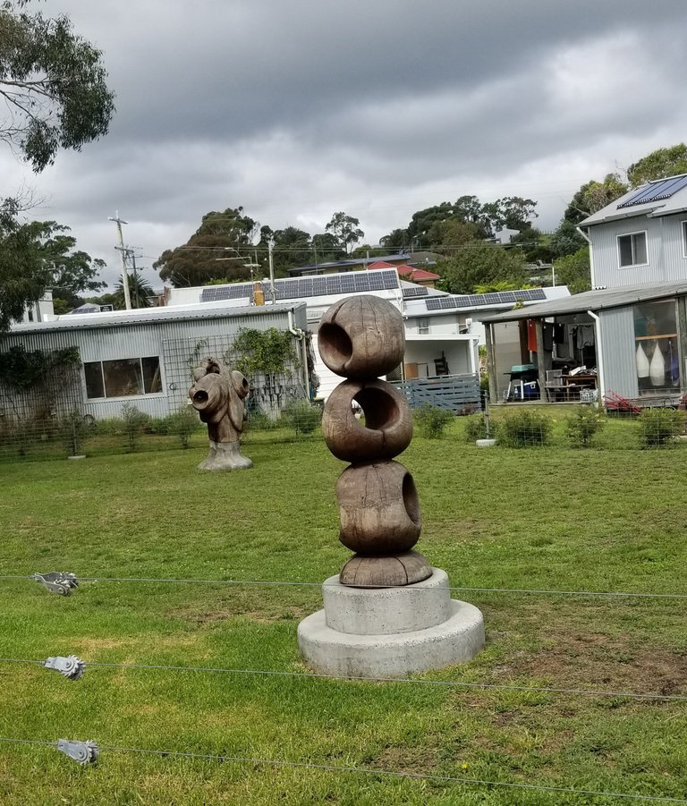 A few interesting sculptures - 3 wood blocks hollowed out and stood on top of each other