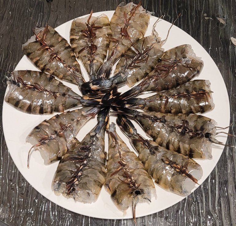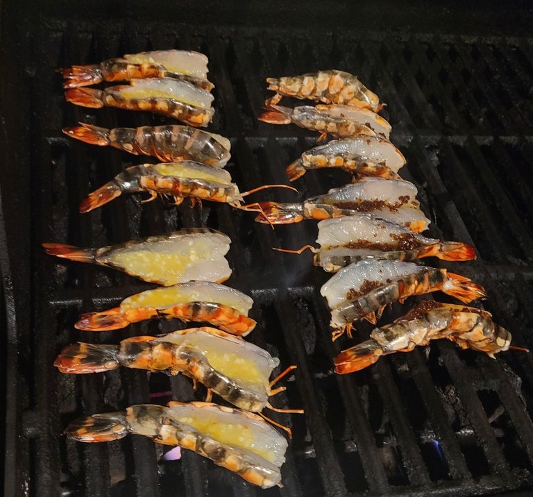 Butterflied prawns - half with lemon garlic butter and half with peri-peri - a Mozambique favourite