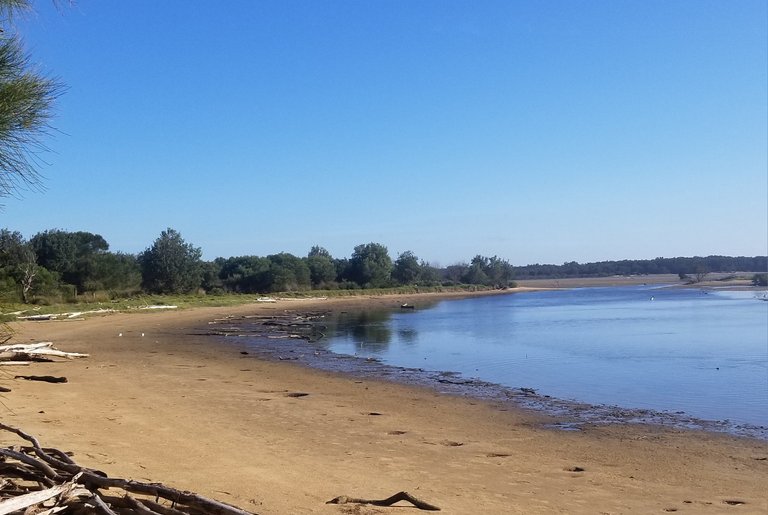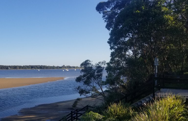 Looking down to flathead corner - tide turning higher - getting the itch to fish. Did renew the fishing licence