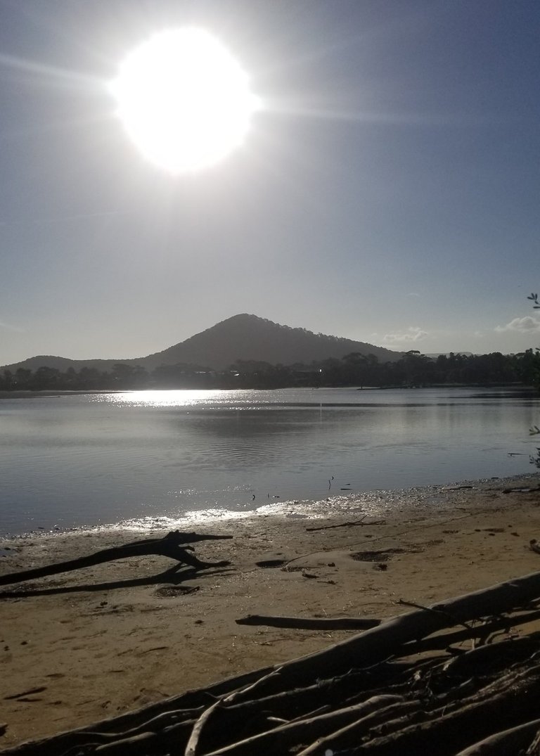 Challenging light for shots of Coolangatta Mountain with a huge sun flare