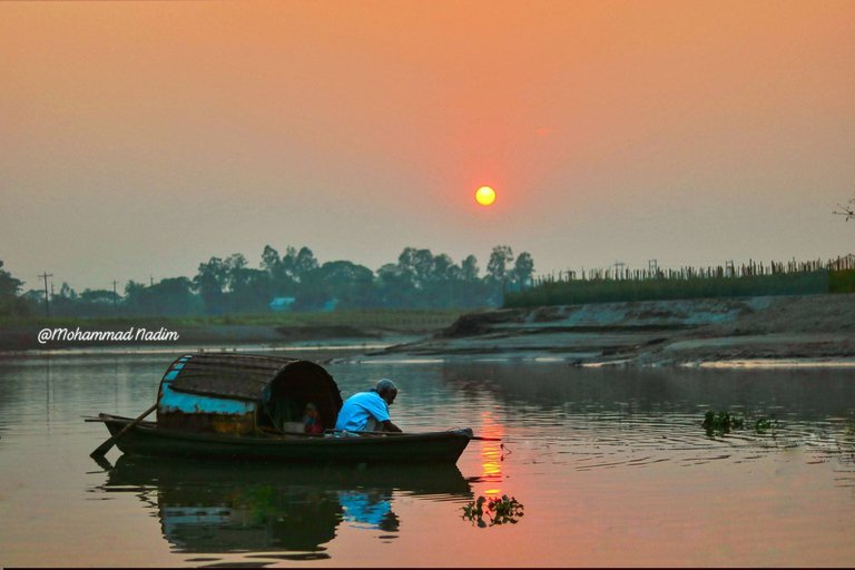 Now it is almost sunset. I am walking on the bank of the river Ganga. The man is washing his hands and face. Maybe he is trying to be ready for his evening prayer. Soon the sky will be dark. If the sky is clear we will see the half moon above our head.