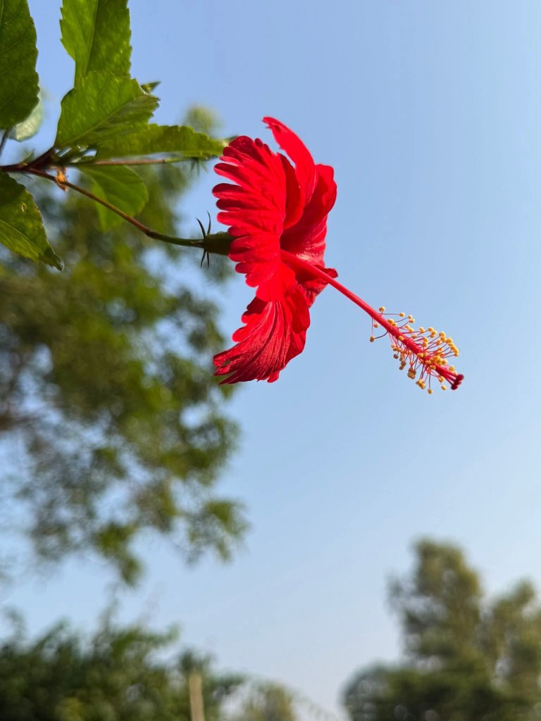 Today this red rose mallow flower bloomed in my garden. In the morning I saw this beautiful flower. It is sudden that after every short time the plant gives me flowers. I always love plants with flowers. It is one of my favourite flower plants.