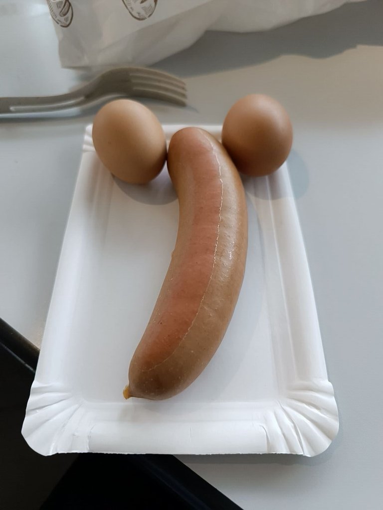 I had some leftovers from yesterday, a sausage and two eggs for breakfast. 😂