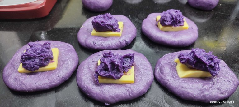 It's been four consecutive days that I've been busy spending my time with my oven, baking. It all started when I baked brownies for the kids for Easter, and then my sister remembered the last time she ate my purple yum and cheese bun. They went out with the kids to buy ice cream, then went home with a bag full of flour and other baking needs and insisted that I make that purple bun since we already have the purple yum jam I made in the fridge. From one request to another, here I was making dough again.