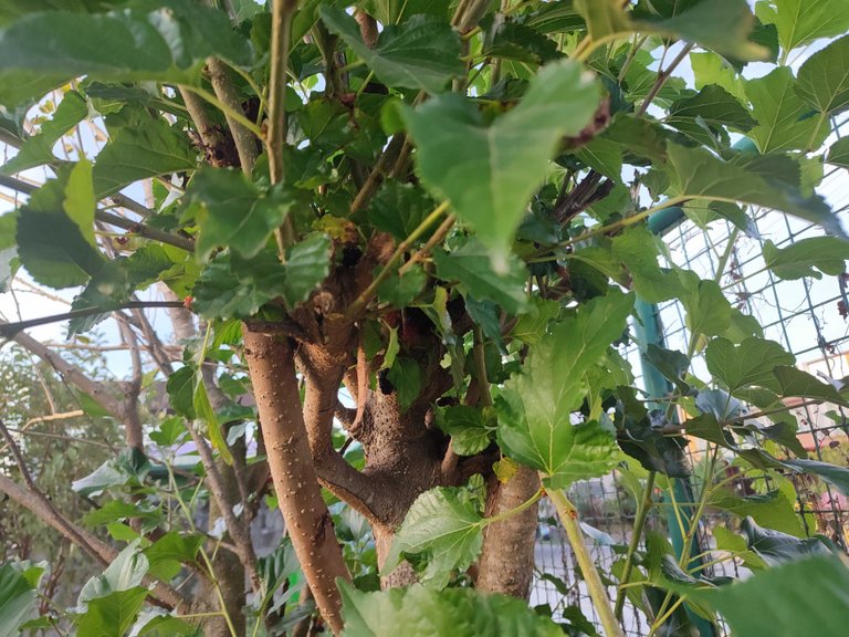 We were strolling today when I found this mulberry tree at the fence of the club house. I got curious enough to go near it and check if there's ripe fruit, and I found a lot in the inner part of the tree, hidden by its branches and leaves.