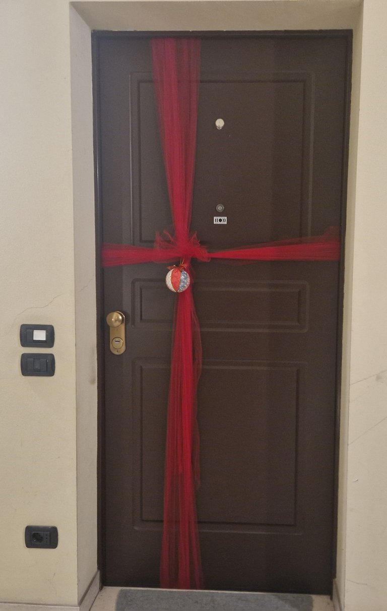 Questa decorazione sulla porta è un’idea geniale. È la prima volta che vedo una decorazione simile e mi ha colpito. Il prossimo anno, durante il periodo festivo, mi abiliteró per fare una cosa simile anche nella porta di ingresso di casa.