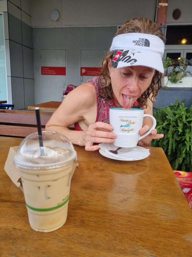 While he had a cold coffee and a burger, I opted for the biggest coffee I could get. Brad got a photo of me enjoying said coffee 😂