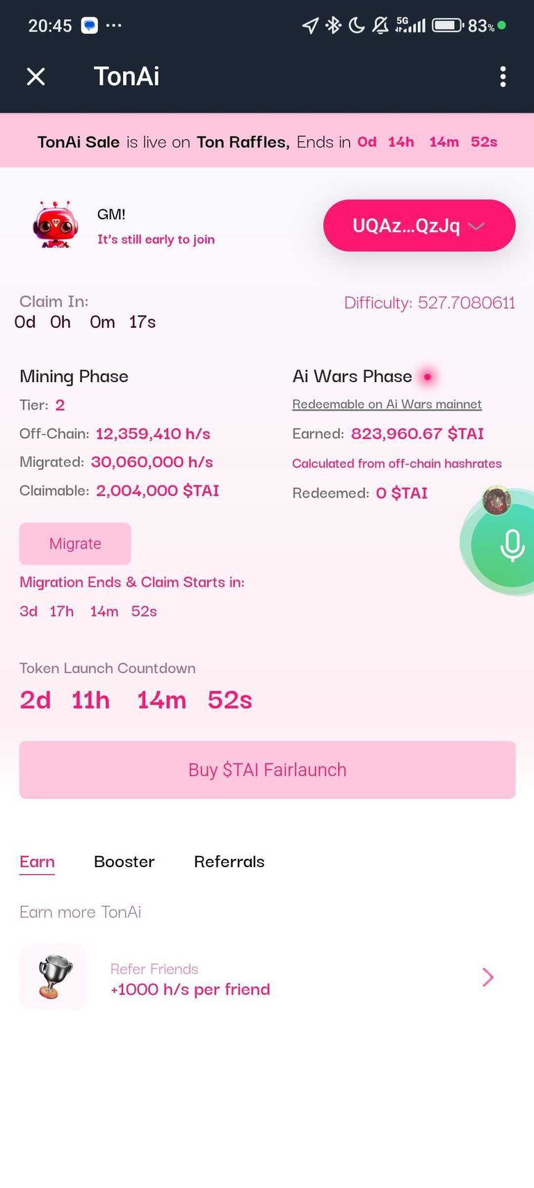 Also start mining #TONai for free claim hashrate