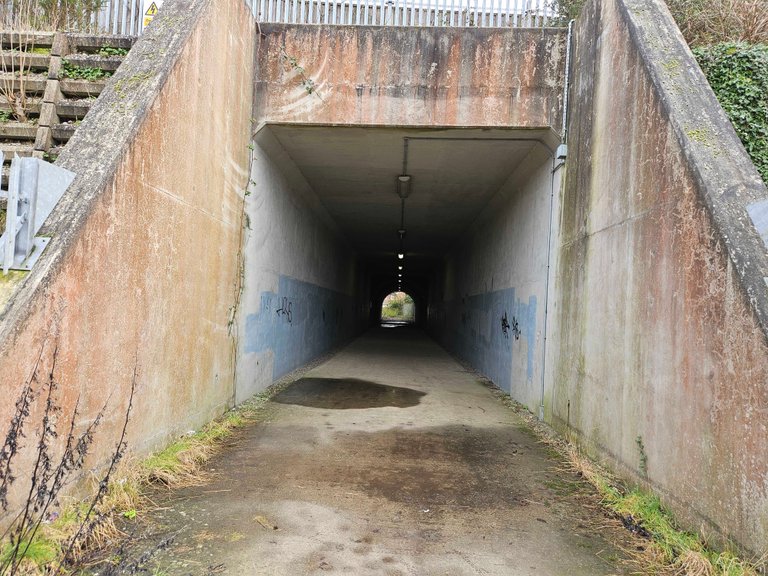 After turning back for the return leg, taking a route through a strange tunnel under the main line railway. It is big enough for cars to pass but is only used as a footpath.