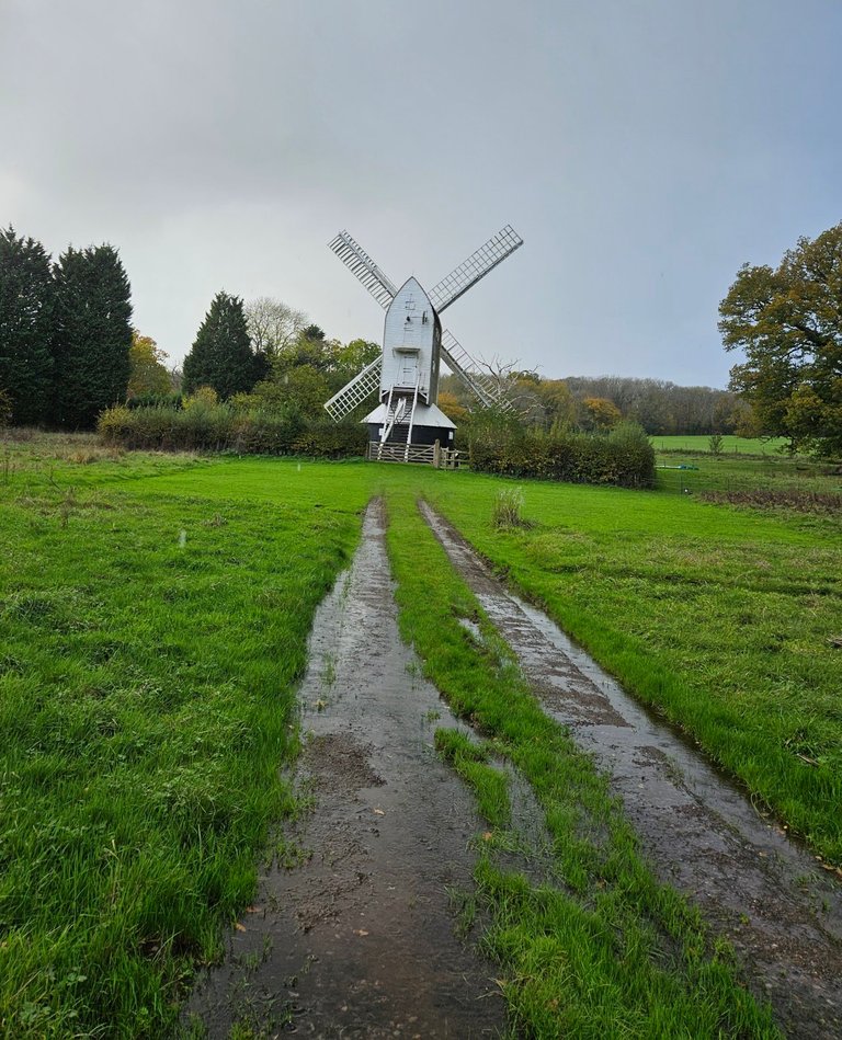 At the half way point, I decided to take the roads back home. This took me down hill and past an old windmill, that had been moved from a location close to Gatwick Airport. The Lowfield Heath Windmill. At this point there was a cloudburst!