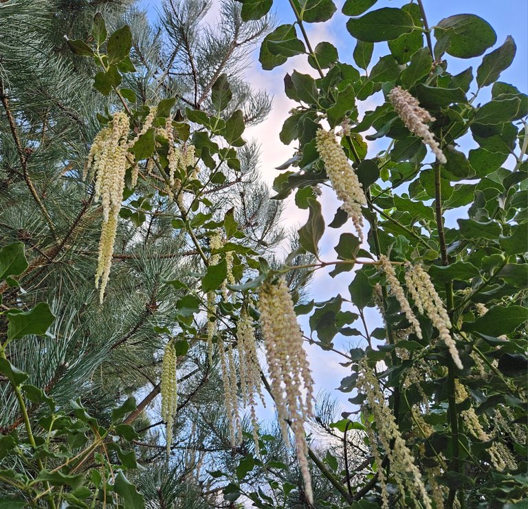 Another thing I noticed were some more katkins hanging on a bush. This variety is not known to me but looks great with very long tentacles hanging there. I will keep an eye on this over the coming months. It is an evergreen shrub, of which there are many others here.