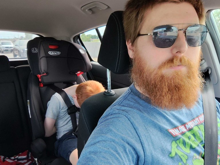 I think I wore him out! He was passed out like this while we were sitting in rush hour traffic! Do you think he had fun?