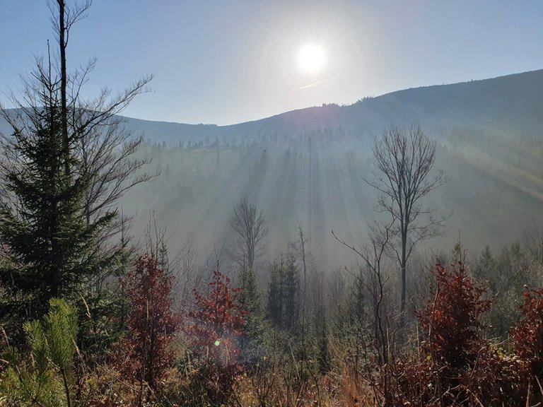 Prześlimy prawie 20 kilometrów, ale ostatnie kilka szedłem już z padniętym telefonem, także jestem parę tysięcy kroków do tyłu z krokomierzem. Po zejściu do zamglonej doliny czułem się jak po powrocie z innego świata.