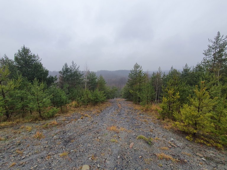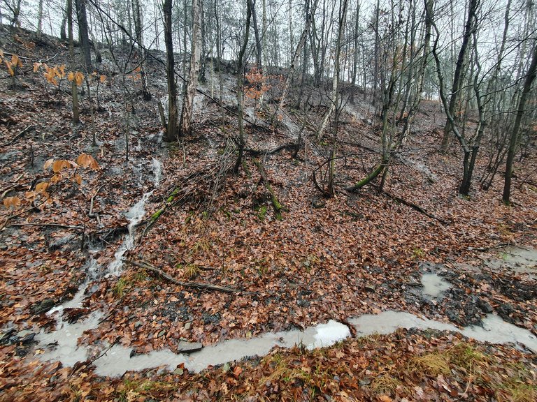 A kilkaset metrów dalej wlazłem sobie na hałdę. Jak to często bywa, wejść było łatwo, to zejście na dół okazało się wyzwaniem. Przeszedłem sobie całkiem na przełaj chwytając się drzew na zboczu.