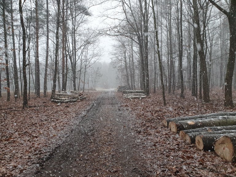 W lesie nikt liści na szczęście nie grabi, i mimo, że było chłodniej niż ostatnio, to bardzo endżojowałem spacer. W pewnym momencie, z nieba zaczęły nawet sypać się wielki płaty śniegu. Krajobraz zabielił się błyskawicznie.