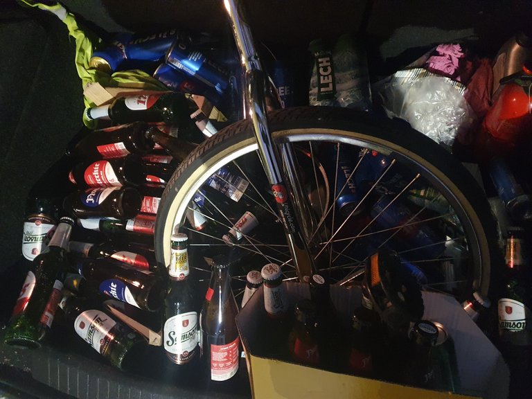 Wczoraj oprócz tego odwiedziłem pod wieczór rodziców. Podczas wizyty dostałem cynk na jednej z freegańskich grup, że w jednym ze śmietników w Będzinie leży sporo piw. Sprawdziłem lokalizację i okazało się, że miałem 5minut drogi. Do Katowic wracałem więc przez Będzin.