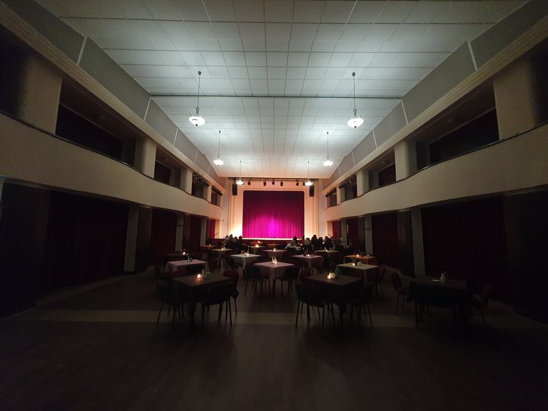 Ogarnąłem się, wsiadłem w auto i zdążyłem na czas. Na miejscu znaleźliśmy lokalny dom kultury, przyjechaliśmy ponad pół godzin przed czasem, był więc czas kupić sobie kawę i drinki.
