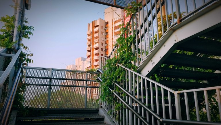 We passed by the park of the district hospital walking along the alley and reached the footbridge that connects the two complexes Zornitsa and Izgrev.
