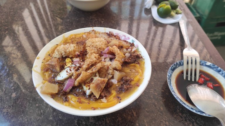 One level up, the small cookshops and restaurants also offer very cheap food, between $0.80 and $2, but you won't find anything fresh there at all, it's all flavor enhancers, a bit of meat and fat, sometimes noodles and/or rice.