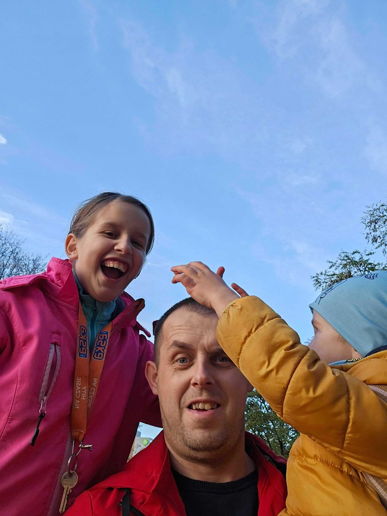 After Alex, it's the turn of the youngest, Wiktor, who needs to be dropped off at kindergarten, while at the same time we take the older children to school. But unfortunately today only Saruna because the oldest son injured his shoulder so he stays at home.