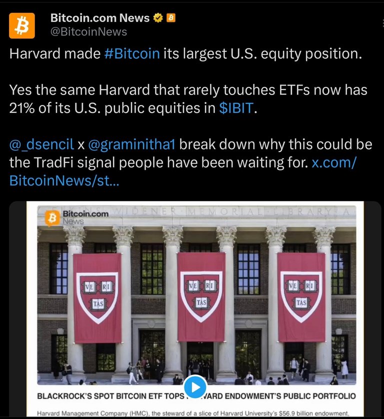 I don't normally leqd my actifit report with a headline, but I thought it was pretty telling to see what the Harvard endowment is doing with its fund. When they jump in with Blackrock BTC position, I'm definitely taking notice! Short term pain will be a long term gain.... same goes with my health. I just haven't locked in yet.