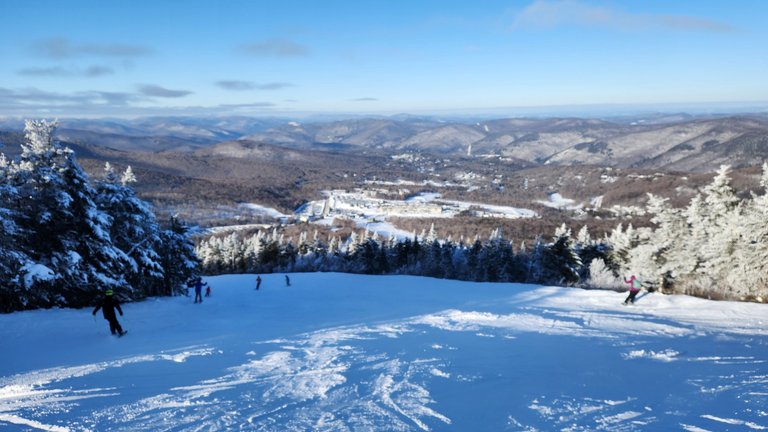 I certainly covered a bunch of ground. For such a late start (we only hit first chair at 11.15) we still got in 12 runs on the day. Granted, the Needle's Eye runs aren't the longest, but it was a good first day of three on the long ski weekend trip with the family.