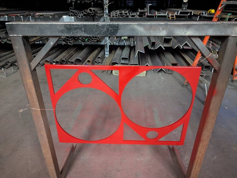 We cut some pieces of metal on the CNC plasma table at the shop. We cut some circles and squares and some triangles.