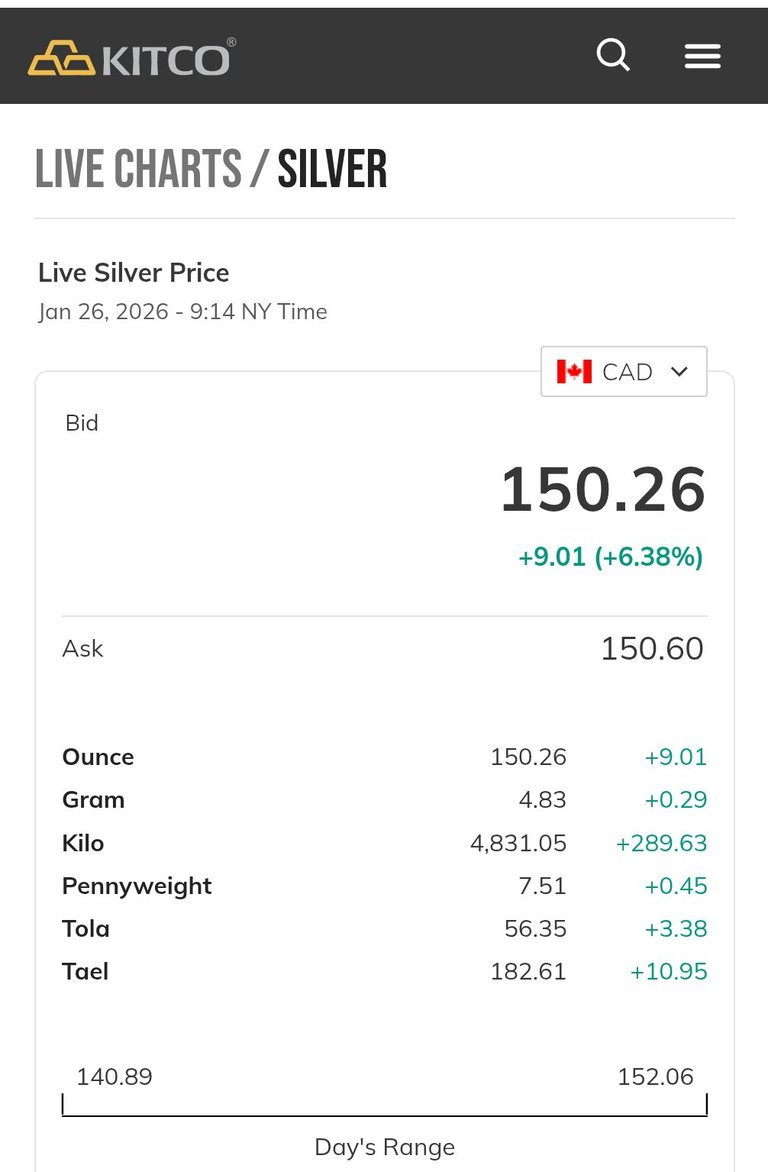 Silver reached another milestone in Canadian dollars! At the $150 Mark, it seems like just yesterday it hit the $100 mark.