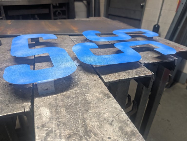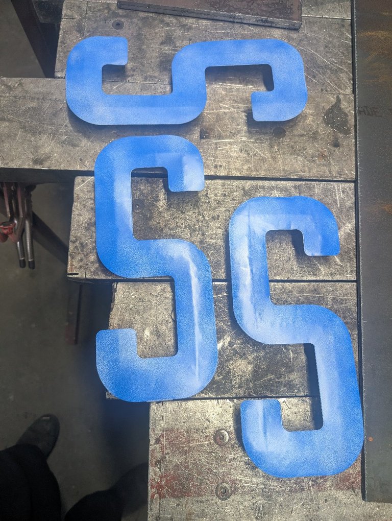 Two of the "S" when missing so we cut a few more on are CNC plasma machine. We cut three of them in case one of them failed. He only needed two but he ended up with three. Here's how they turned out!