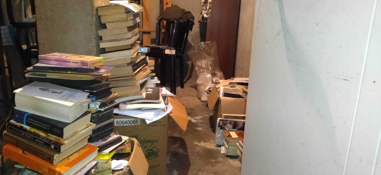 Contemplating my books scattered and piled up made me feel bad, on the one hand, nostalgia on the other, and certain sadness because I have to get rid of some of them.