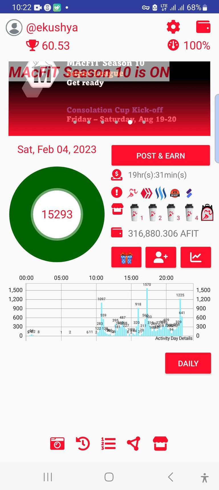You have been rewarded 139.8572 AFIT tokens for your effort in reaching 15376 activity, as well as your user rank and report quality!