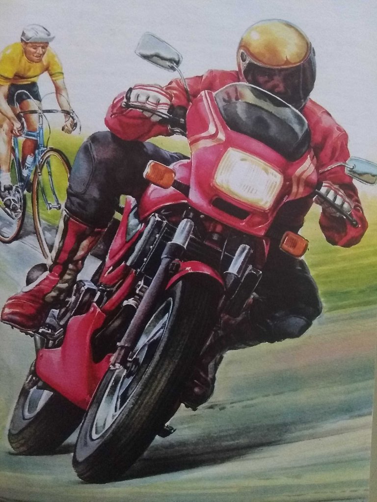 Walking of 3km to my job a small library in my city. This pic taked from a book about motorbikes.