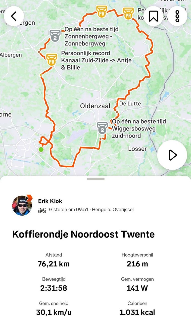 The first cycling Sunday of the year! I went out with 4 friends and we did a nice ride with a coffee break on the way. It was a bit cold and windy, but also very sunny. All in, it was great start of the season. Here are the stats:
