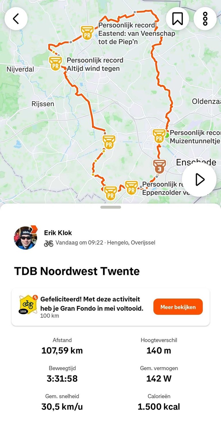 Big biking day. In the morning, we did the usual cycling training. A long one of just over 100 km this time. We took it easy, but still managed to get a good average speed on the clock. Here are the stats: