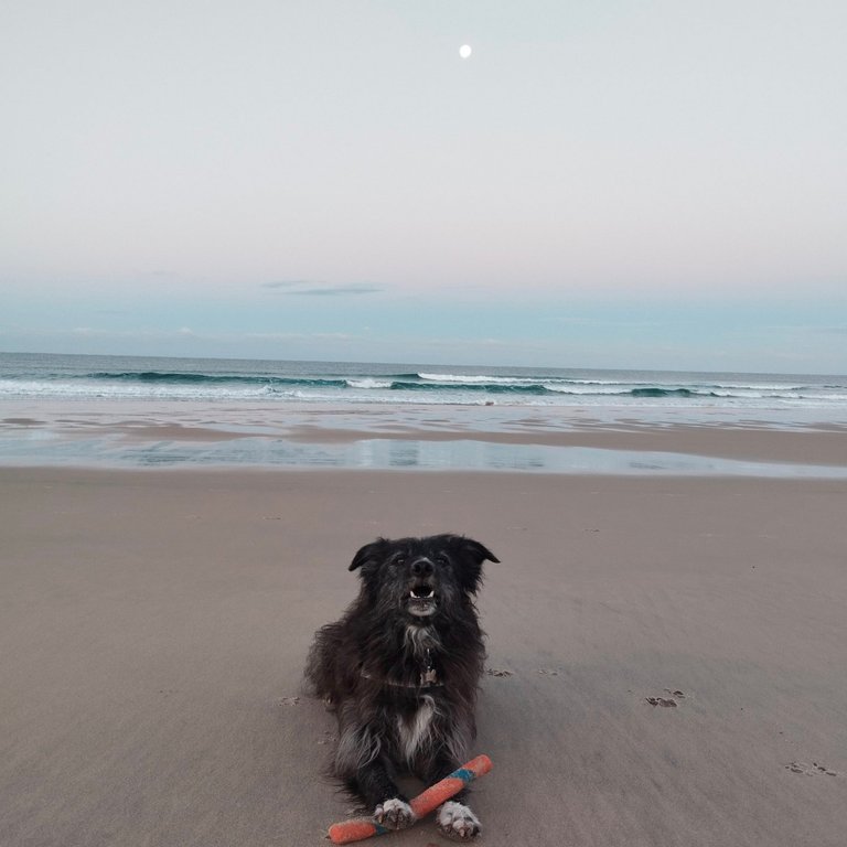 Today, Minty got me up about 8am. It was just getting light, the moon floating above the sea. We walked along the beach, lovely to watch the sky pinken (is that a word?🤣) as the sun rose.