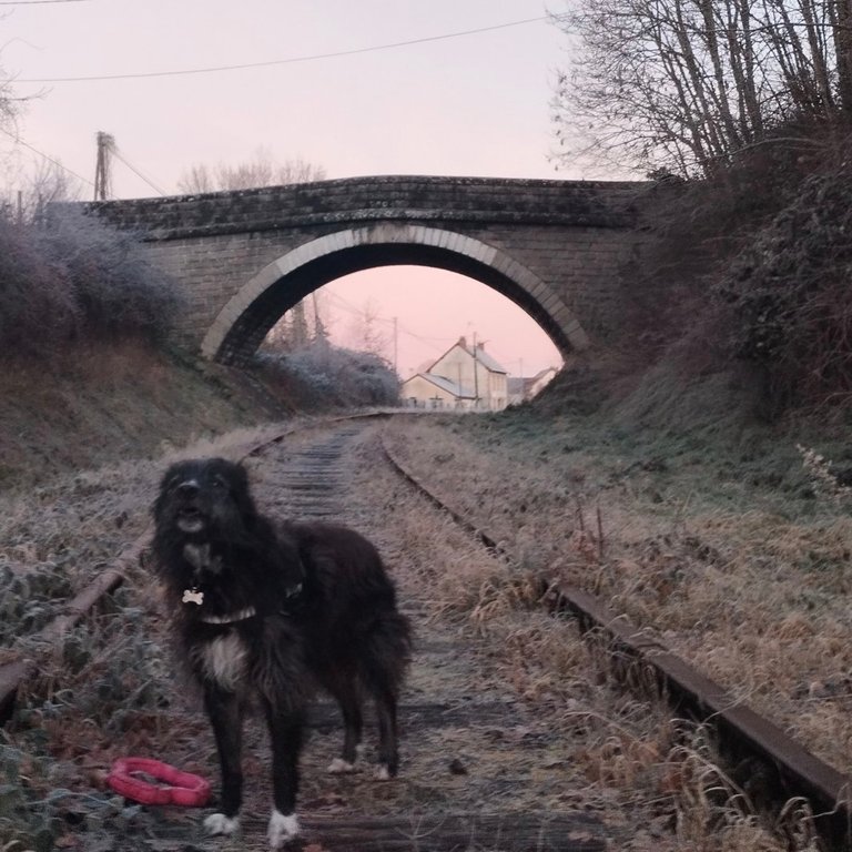 Walked Minty this morning, around eight fifteen, along the old railway line (it's abandoned, no trains come this way anymore).