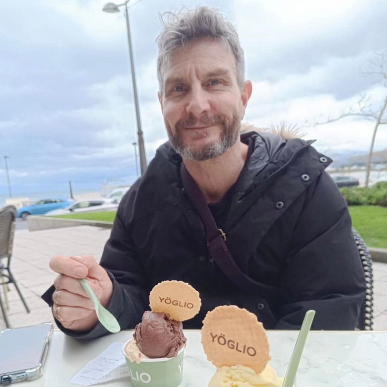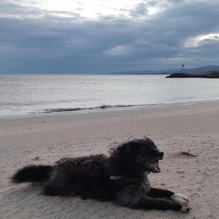 Today was another dry(ish) day. A lovely walk down on the beach before exercising and breakfast. Then another walk into town for some shopping. Stopped for a coffee. The coffee came with a couple of complimentary cakes for the humans and a couple of dog biscuits for Minty.