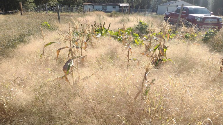 So much grass! So much itch! I pulled everything from the upper garden, most of it was grass which went to the sheep. I will be bringing everything else down soon to call the garden spot done. The fence posts will work nice for the wood cover. Got some pumpkins, corn, and melons but just a few of each.