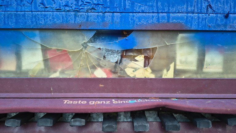 (Although we could make so many smart decisions with our brains, unfortunately far too many people choose destruction or other stupid things. Here you can see a section of a cigarette vending machine. Even though smoking is one of the aforementioned stupid decisions, that doesn't mean you have to break the machine.)