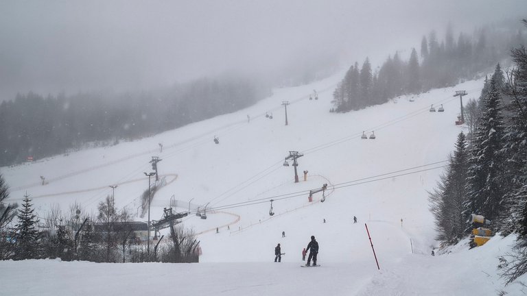 (On our way back down to the valley, we had to cross countless ski slopes. Skiers and snowboarders were slalom-riding around us, which was sometimes a little scary.)