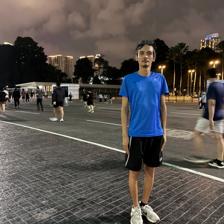 The sky was dark with thick clouds, but it didn’t rain. The stadium lights were bright, and the city buildings looked quiet in the background. People were everywhere, jogging, walking, chatting, just enjoying the night air.